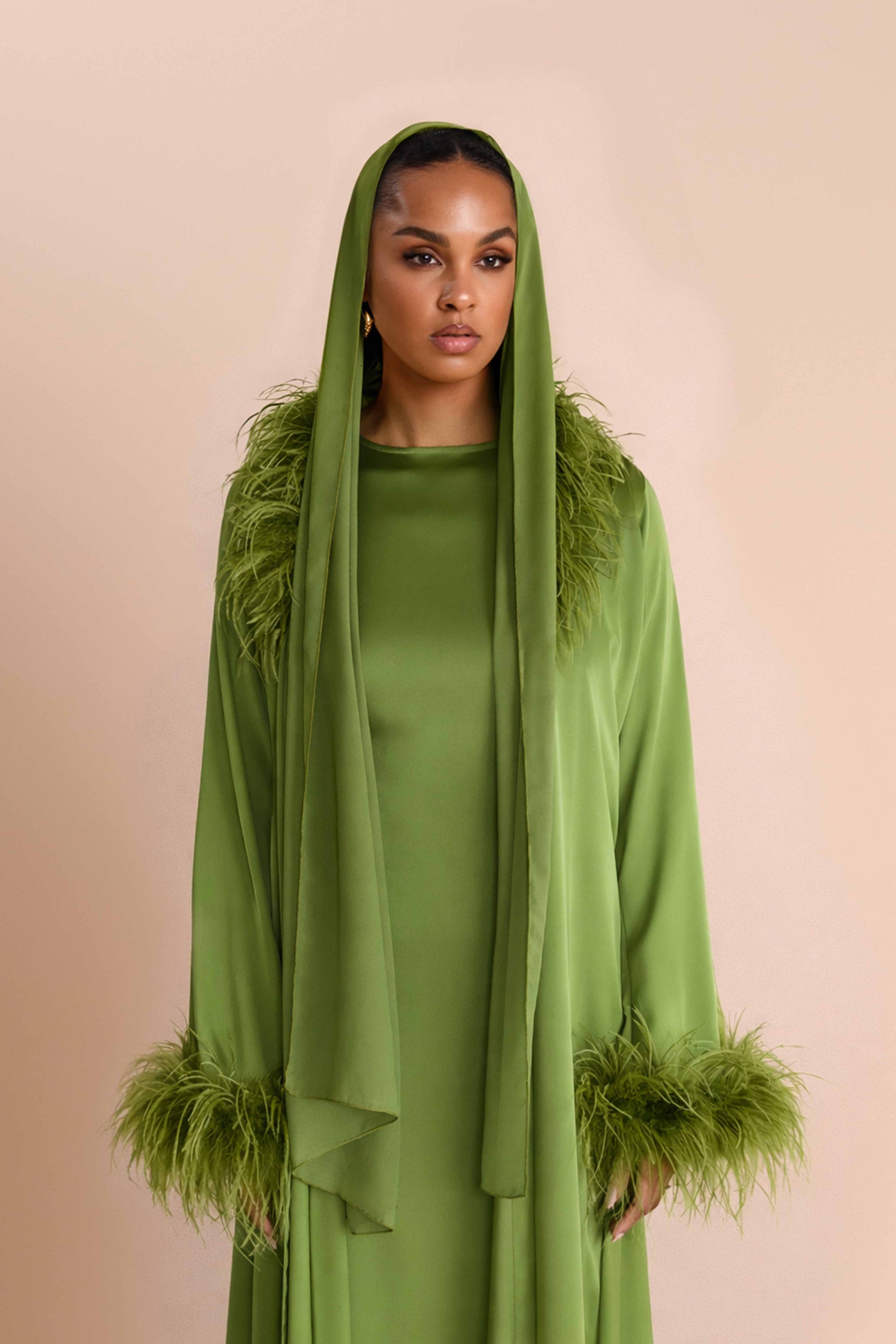 FEATHER SLEEVE ABAYA - DUSTY PINK